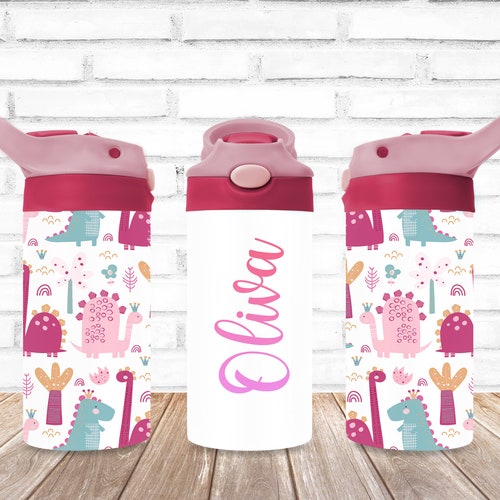 Pink Dinosaur Water Bottle Water Bottle For Kids Flip Top Etsy