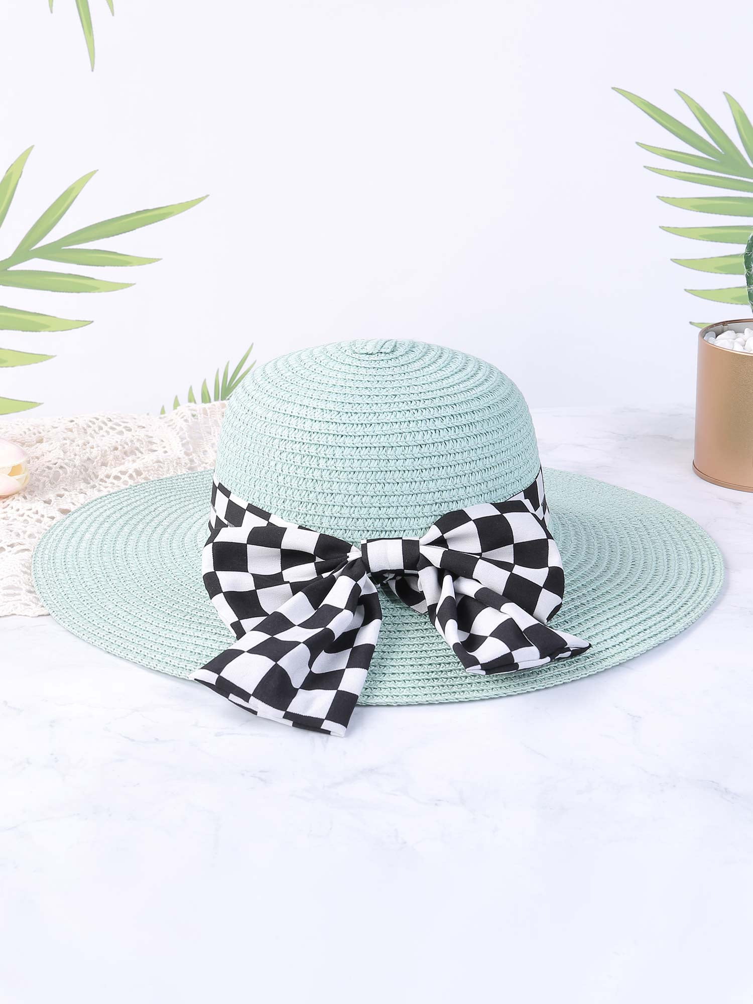 Children Girl Hat Weave Wide Brim Plaid Bow Decor Breathable Sun Protection Anti Uv Beach Seaside Cap Walmart Com